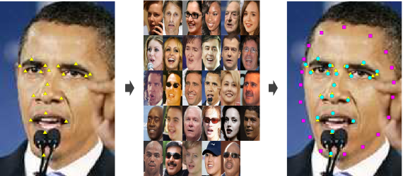 Tom-vs-Pete Classifiers and Identity-Preserving Alignment for Face Verification,T. Berg and P. N. Belhumeur, in Proc. British Machine Vision Conference (BMVC), September 2012. Oral presentation. Mark Everingham Prize. [paper] [bibtex] [slides] [presentation video] |